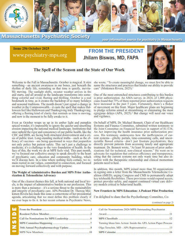 To submit the name of a colleague or your name for a leadership position, please send a brief bio which includes your current practice setting, subspecialty (if appropriate), specific areas of interest, and past roles or participation in MPS to our Administrative Director, Debbie Brennan ([email protected]). The deadline for nominations is Monday, October 10, 2025. All Nominating Committee correspondence is strictly confidential. If you nominate a colleague, please let us know if you have communicated your nomination to them. The Nominating Committee will consider all nominations and will select a slate of candidates to be presented to the membership in the winter prior to the election which will take place via electronic ballots. The new leadership will be announced at the MPS Annual Meeting on April 28, 2026.